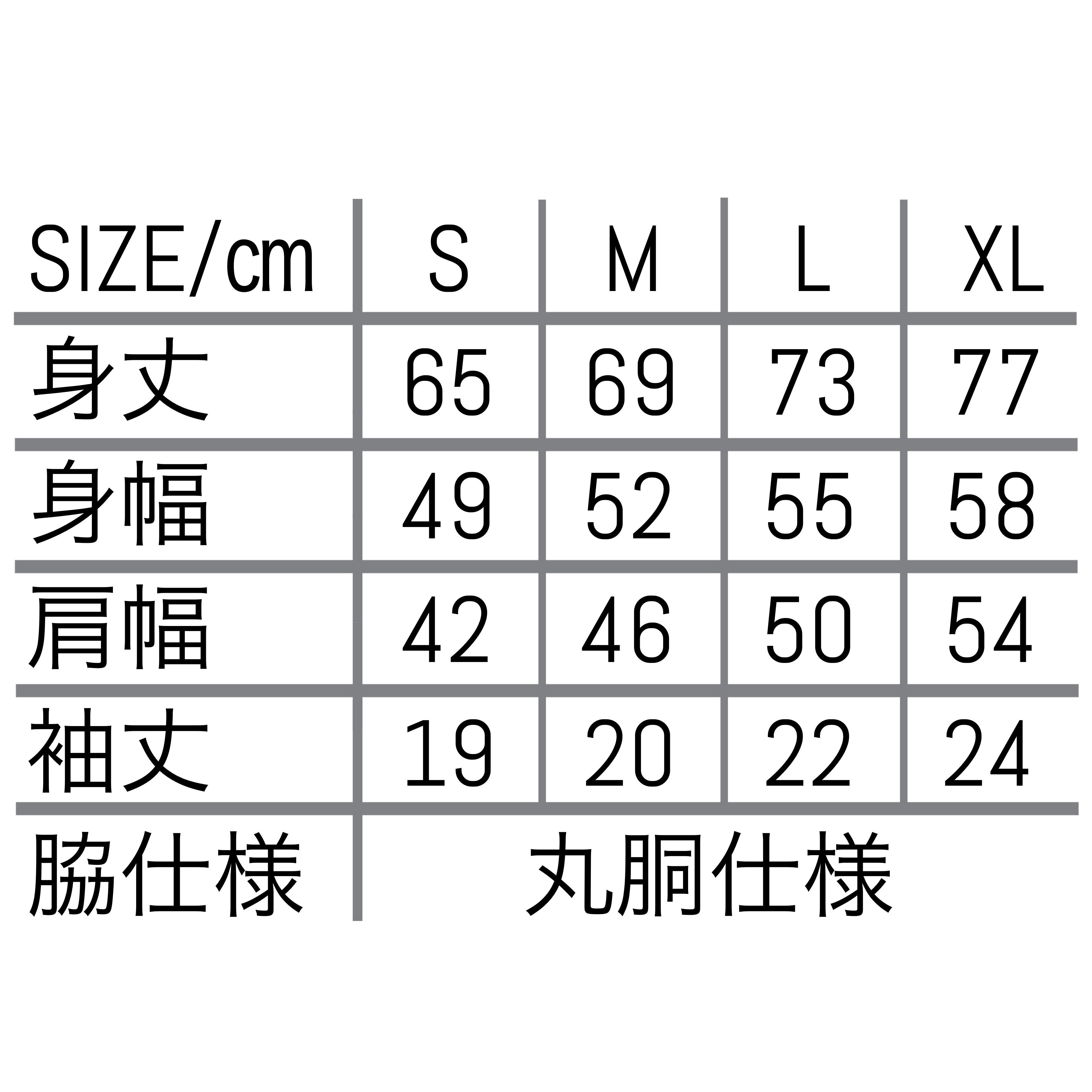 XL:身丈 77・身幅 58・肩幅 54・袖丈 24